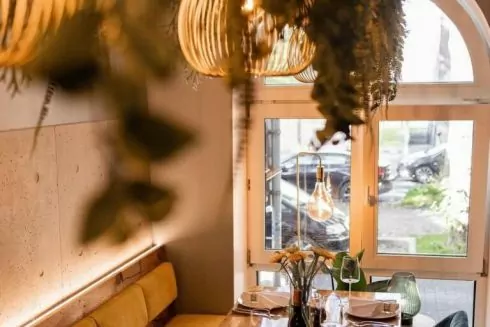 Це перший український заклад, який відкрили у центрі Дюссельдорфа. Він невеликий, але затишний. На столах стоять свіжі квіти, й до гостей виходить усміхнений шеф-кухар Тарас Хирний і питає, чим пригостити. У закладі пропонують борщ, вареники, голубці, сирники та медовик.