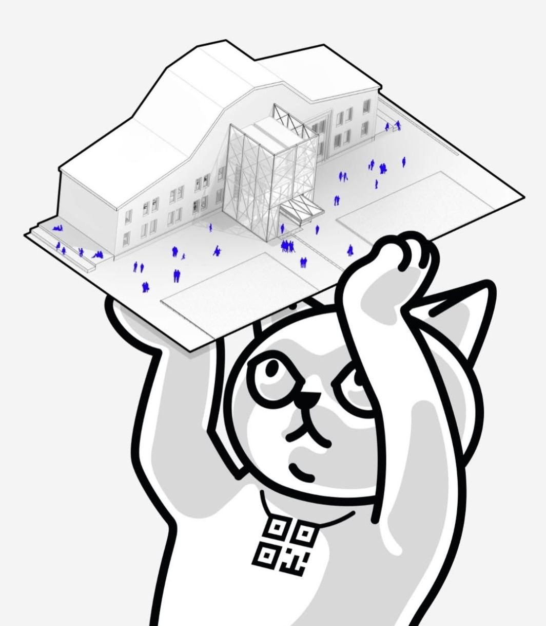 Назву та айдентику розробила banda.agency — зокрема логотип у вигляді хвоста кита. А сама назва “КИТ” народилася, коли команда вперше побачила простір — поруч стояла медіаскульптура з переробленого пластику, яка тепер теж стане частиною нового життя павільйону.