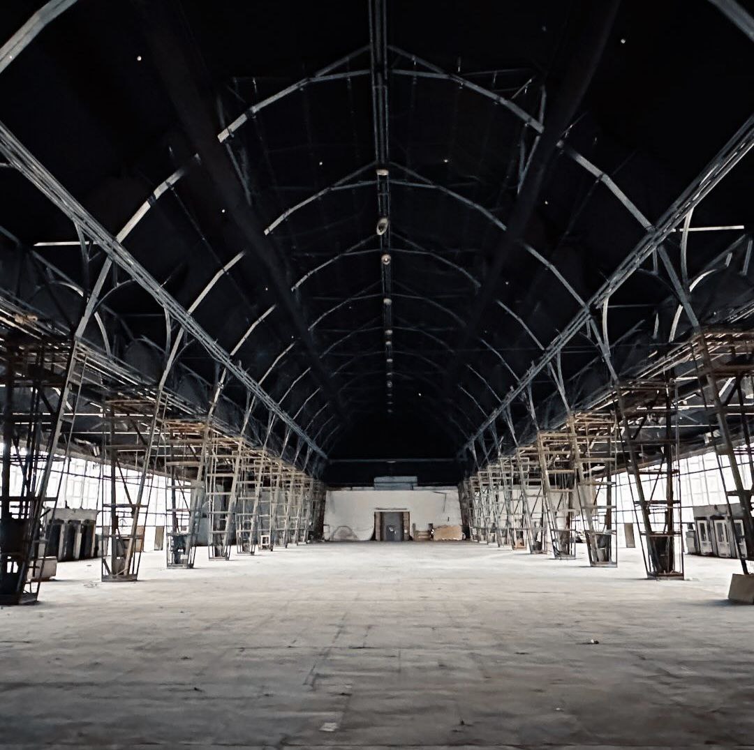 Усе почалося восени 2023-го, коли команда “Куражу” разом з операційною директоркою Настею Лєпіховою прийшла оглядати дев’ятий павільйон ВДНГ. На той момент він був закритий, завішаний чорною тканиною і виглядав мов декорація до постапокаліптичного фільму. Але поруч стояла скульптура кита — і в цей момент усе стало зрозуміло: перед ними — новий дім.