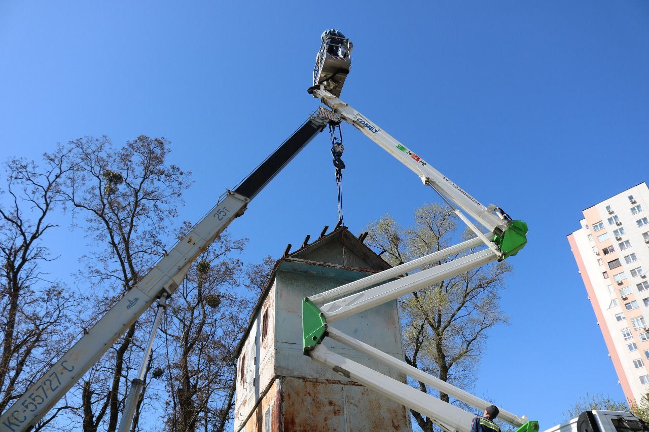 У Києві прибрали саморобну конструкцію для розведення голубів, яку збудували з трьох металевих гаражів.
