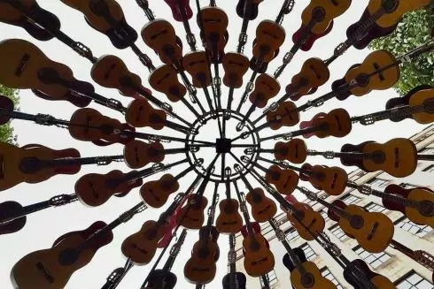 У Манчестері встановили "Собор звуку" (Cathedral of Sound) — інсталяцію з подарованих містянами гітар, що перетворює енергію вітру в акустичний звук.