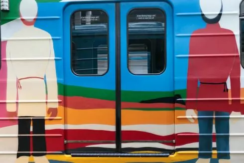 Оформленням займалася команда художників Paint Hunters. Зовні вагон поїзда прикрашений яскравими геометричними фігурами в стилі художника та його "чорним квадратом".