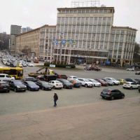 Перед будівлею Українського дому встановлюють антипаркувальні стовпчики: фото