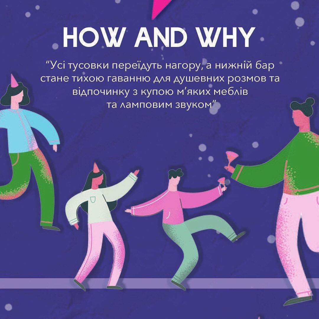 Всі вечірки проходитимуть на верхньому поверсі. Також там будуть влаштовувати концерти – буде велика сцена та гримерка.