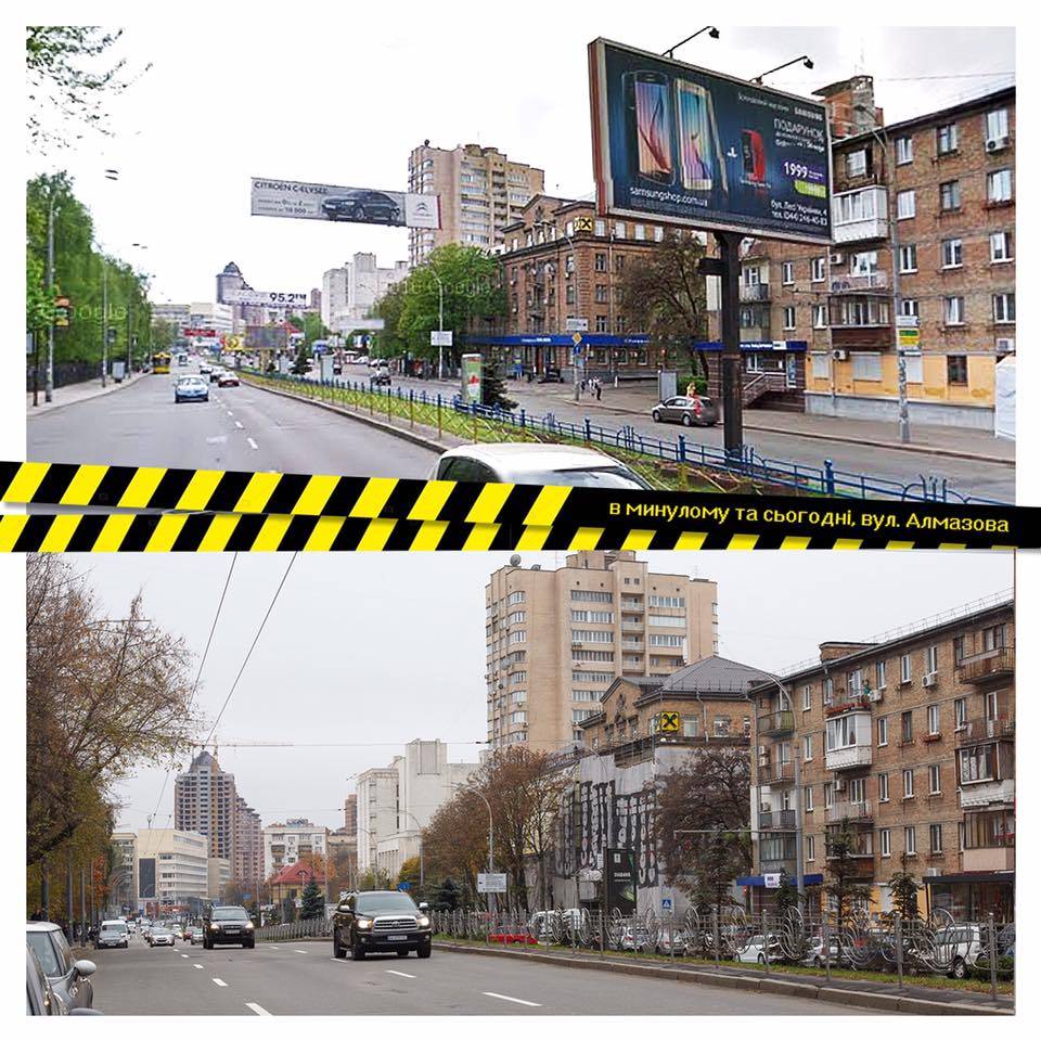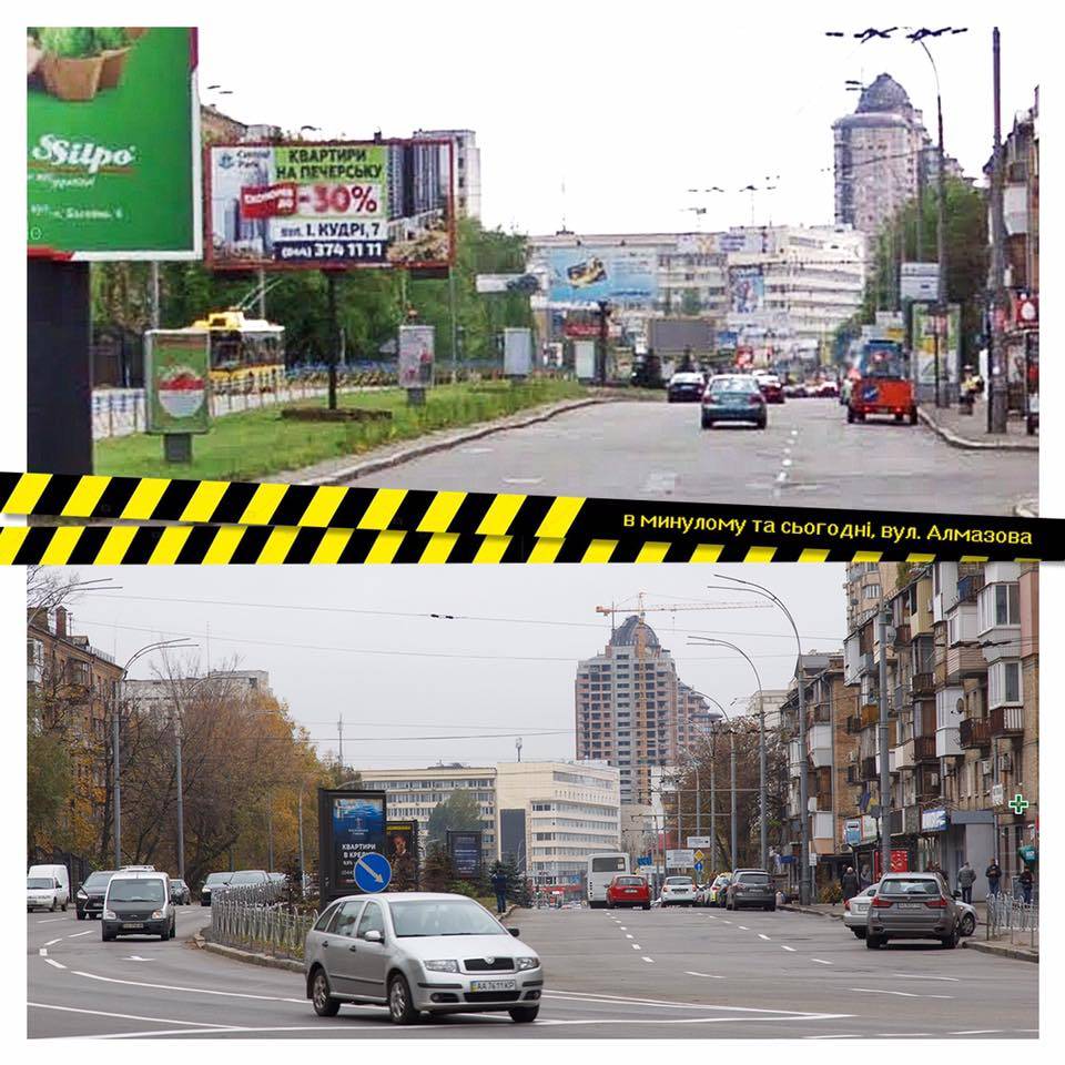 На Печерську очистили вулицю генерала Алмазова від незаконної реклами. За словами голови Управління з питань реклами КМДА Олександра Смирнова, тут прибрали 46 рекламних щитів і сітілайтів.Згідно зі схемою розміщення реклами в Києві, на вулиці Алмазова залишилось 19 сітілайтів.Раніше від незаконної реклами очистили Ярославів Вал.