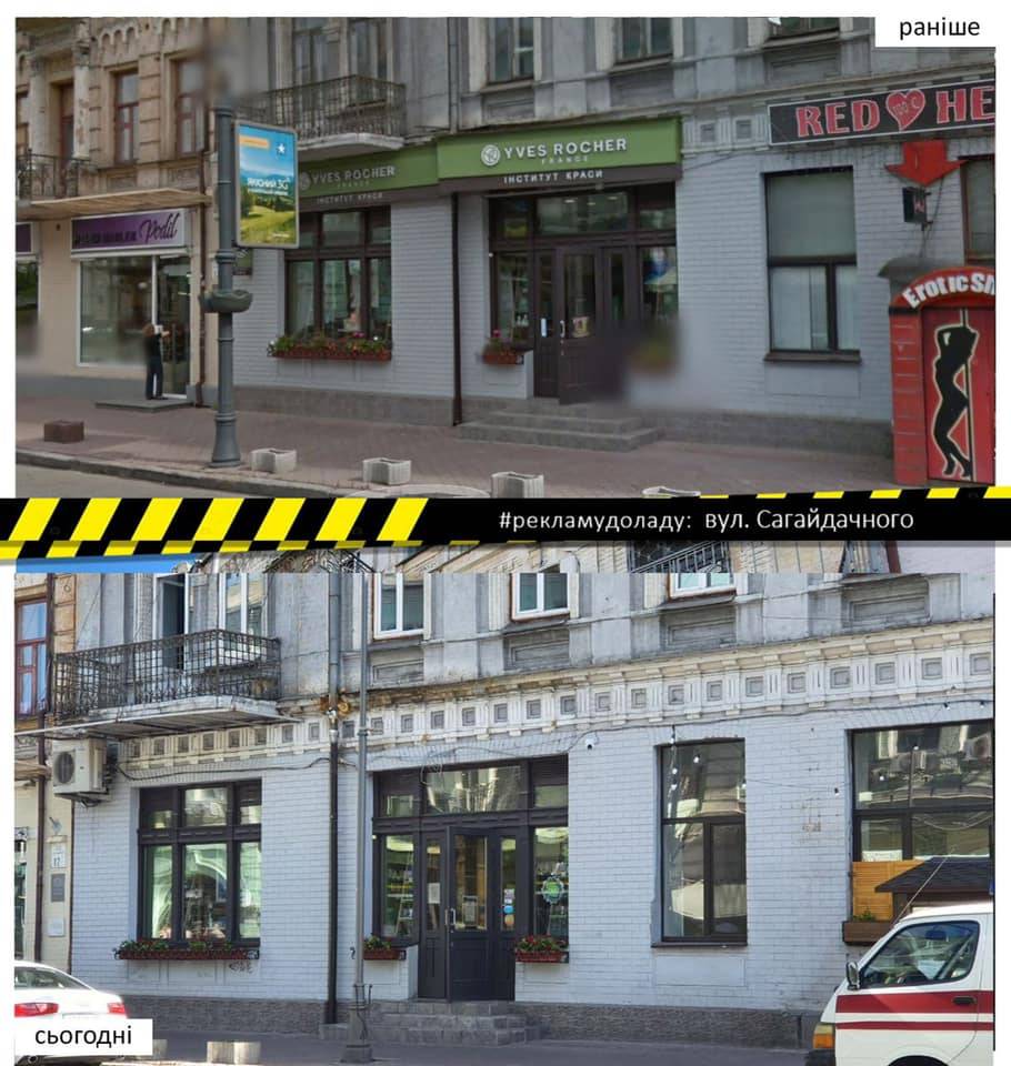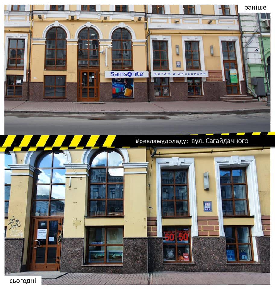Демонтаж вивісок відбувся в рамках проєкту #рекламудоладу. Дивіться, як тепер виглядають фасади будівель без реклами: