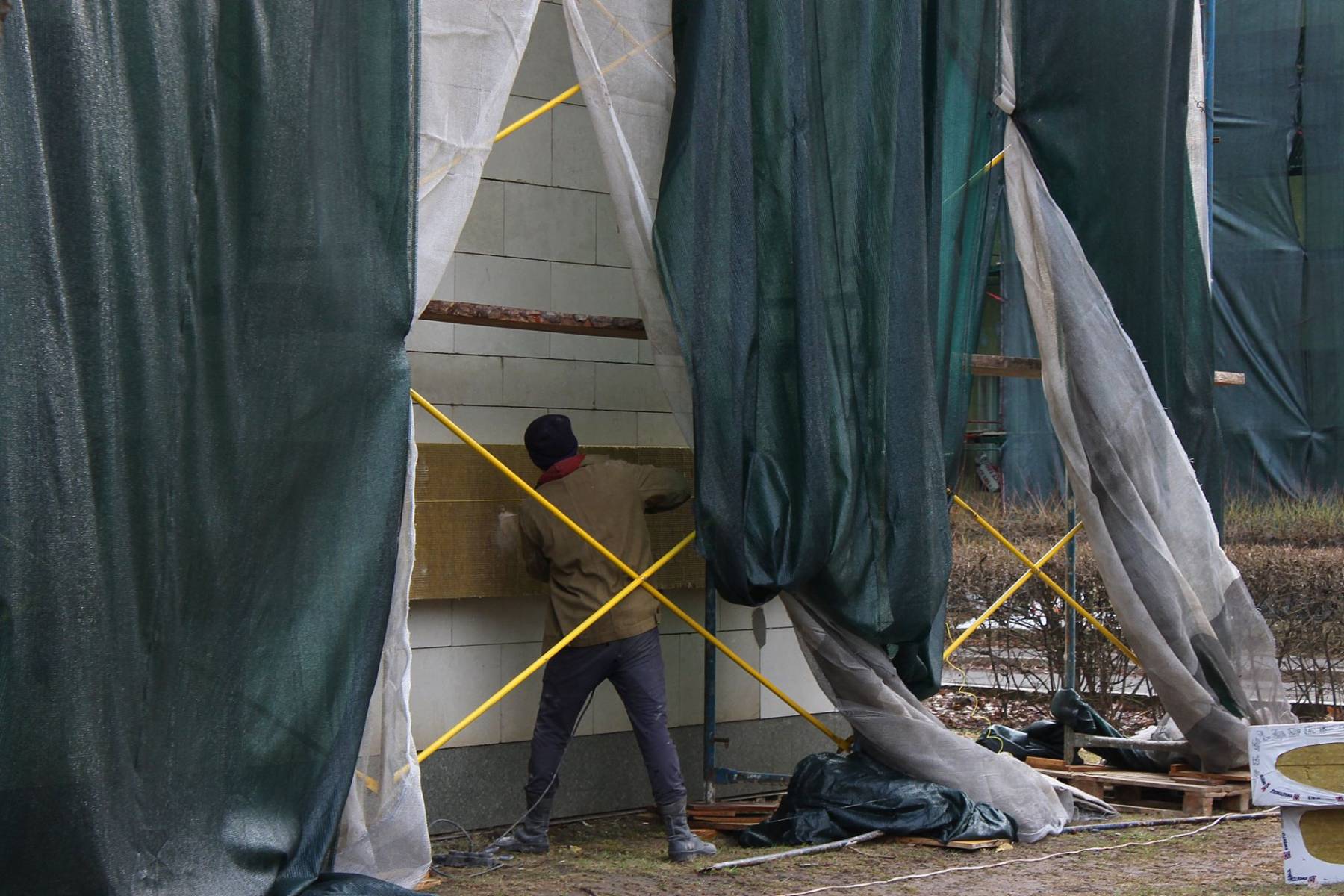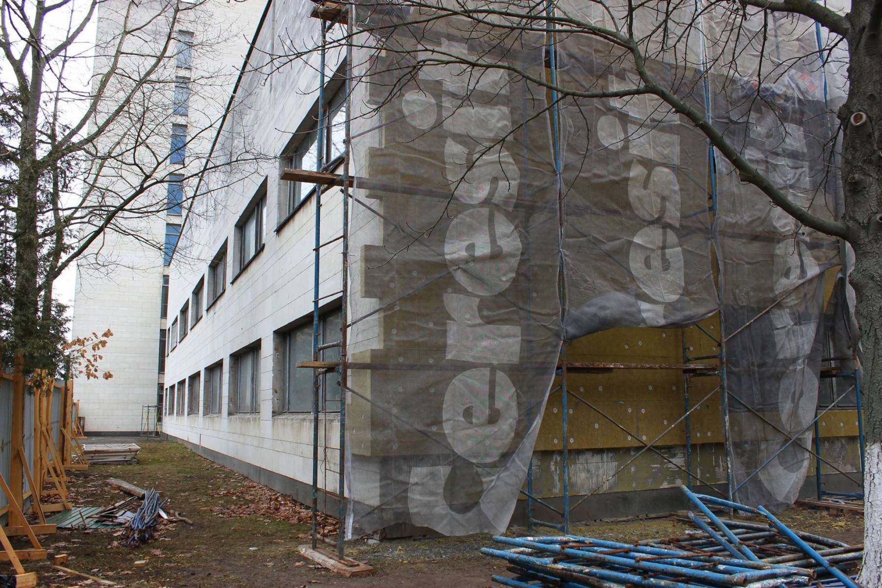 У корпусах КНУ імені Тараса Шевченка, розташованих на ВДНГ, почали утеплювати модерністський фасад.