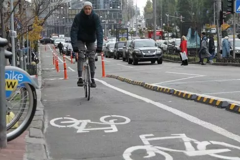На Бессарабці облаштували пластиковий бордюр, який захищає велосмугу від автомобілів. Про це повідомив заступник голови КМДА Костянтин Усов.