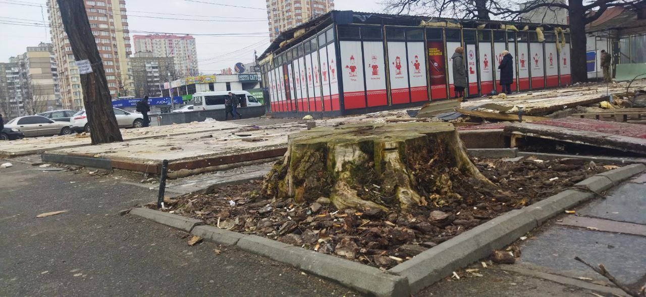 Фото: Поблизу метро «Житомирська» демонтували МАФи, спилявши дерева