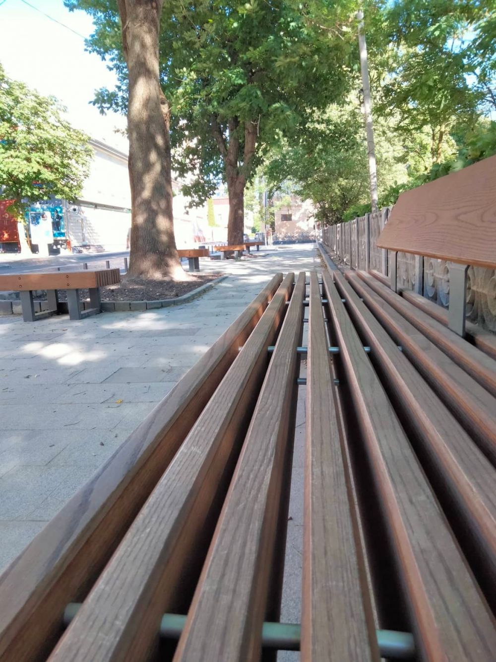Локацію замостили плиткою та засіяли газоном, також встановили лави для відпочинку. У подальшому планують висадити дерева для створення затінку.