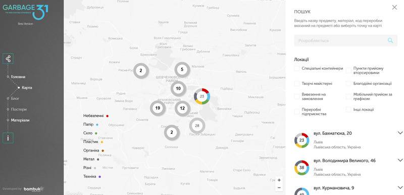 Також на сайті вказано перелік пунктів прийому вторсировини у Львові. Надалі з'являться інші міста. Творці сайту також обіцяють щотижневе оновлення об'єктів і запуск мобільної версії.