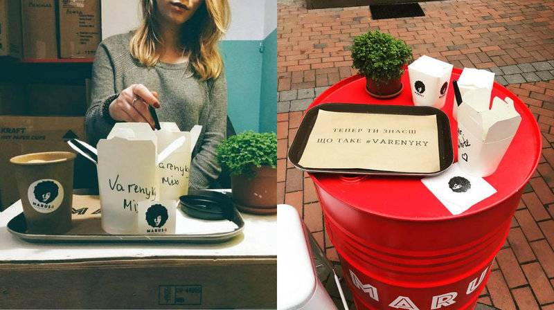 Ціни: cheese boom (вареники з моцарелою, гауді, пармезаном) — 58 грн, black friends (вареники з куркою, горгонзолою) — 42 грн, humus (вареники з хумусом і копченою паприкою) — 38 грн, sweet dream (вареники з ванільним сиром і полуничним джемом) — 49 грн, Mr. White (вареники з картоплею і базиліковим маслом) — 28 грн. У всіх коробочках — по 12 вареників. Marusя salad (мікс-салат, соус айолі, вареники з м'ясом курки, чері та пармезаном) — 49 грн, Marusя ramen — 42 грн