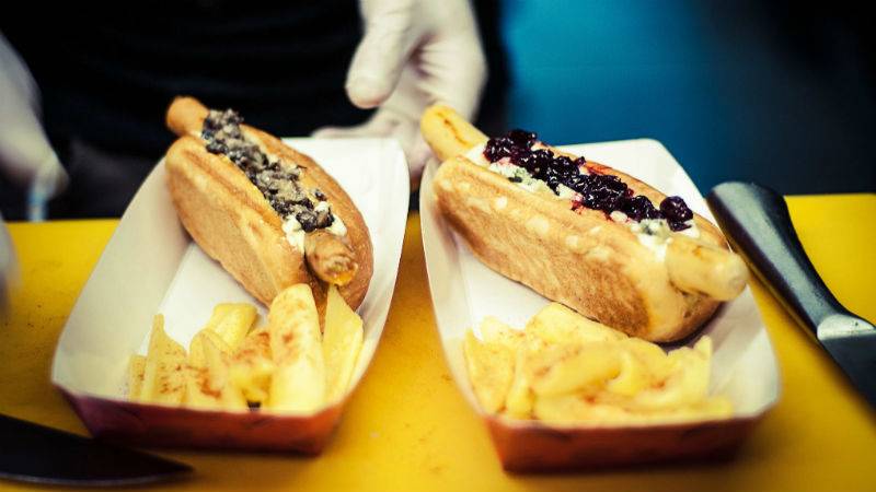 Рок-хот-доги — це зухвала варіація найбільш класичного американського стріт-фуду. Сосиска власного виробництва — куряча або свиняча з копченим беконом і зеленню. Її подають у семи варіаціях із найрізноманітнішими соусами і доповненнями: від трюфельного масла і соте з грибів до овочів під чимічурі, айолі і териякі. Хот-дог можна доповнити картоплею фрі або домашніми чіпсами.