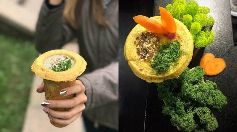 Віднедавна київські крем-супи в їстівних стаканах можна спробувати і у Львові. Заклад щодня пропонує три-чотири варіанти вегетаріанських перших страв у стаканах з прісного тіста: грибний, сочевичний, сирний, гарбузовий або гаспачо, посипані кунжутом і насінням льону. Особливі цінителі та адепти zero waste вміють їсти їх без ложки.