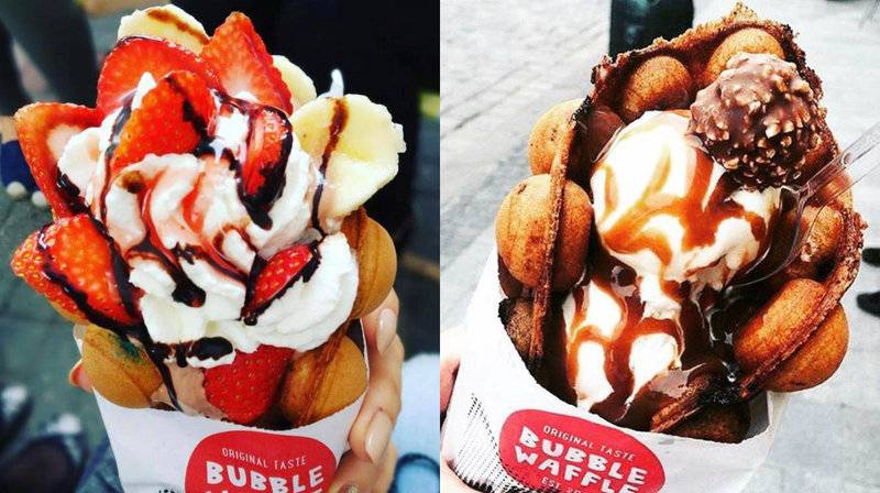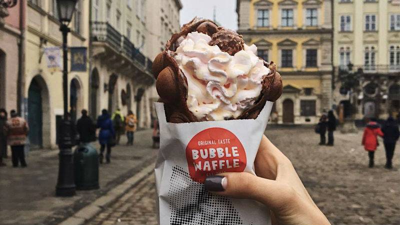 У центрі Львова можна спробувати гонконгські пухирчаті вафлі. Особливість десерту — в тому, що ці самі пухирці можна наповнити начинкою з шоколаду, цукерок, ягід або фруктів. Також туди можна додати морозиво, нутеллу, збиті вершки, фрукти — вийдуть багатошарові солодощі.