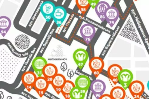 Основательница экскурсионного бюро "Секретный дворик« Юлия Бевзенко создала карту »100+ крутых мест Киева" с ресторанами, кофейнями, кондитерскими, шоурумами и другими знаковыми местами города. По словам Юлии, в подборке оказались заведения, при закрытии которых Киев что-то потерял бы. Карта бумажная, формата А2, но легко складывается в А5.