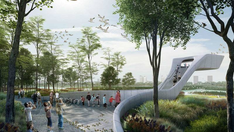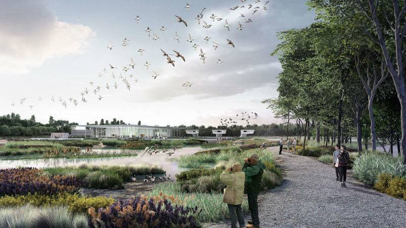 Ідея. Студія McGregor Coxall розробила план парку Ліньган в Китаї. Він розміститься на 60 гектарах водно-болотистих угідь і лісу, де птахи зможуть відпочити і підживитися під час важкого перельоту. Для зрошення місцевості планують використовувати поновлювану енергію, перероблені стічні води і дощову воду. А навколо боліт облаштують 7 кілометрів прогулянкових і велосипедних доріжок, де люди зможуть спостерігати за птахами, не заважаючи їм.