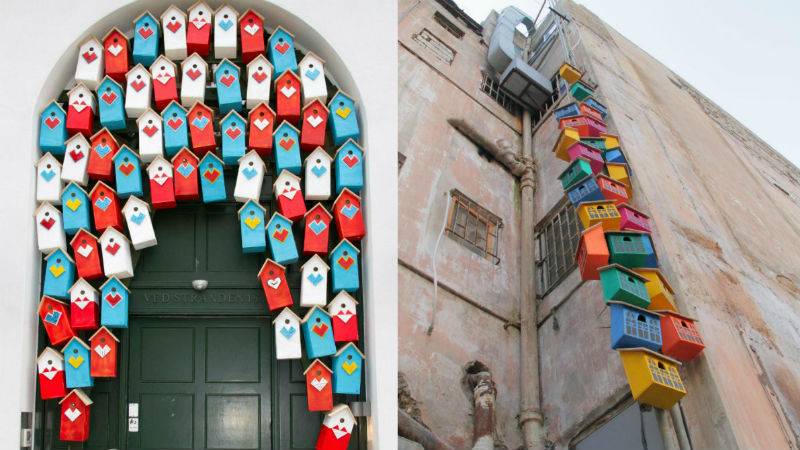 Ідея. У 2008 році датський дизайнер Томас Вінтер за два тижні побудував 250 пташиних будинків. Для шпаківень він використовував виключно вторсировину. Готові будиночки активіст розфарбував в яскраві кольори і встановив в 4 містах по Данії.