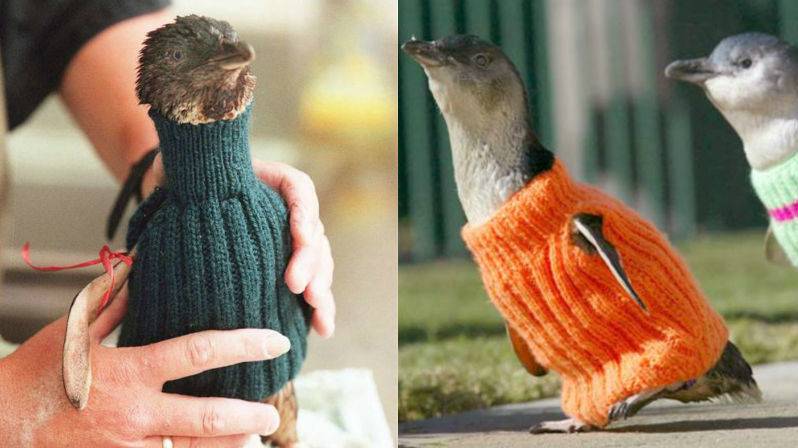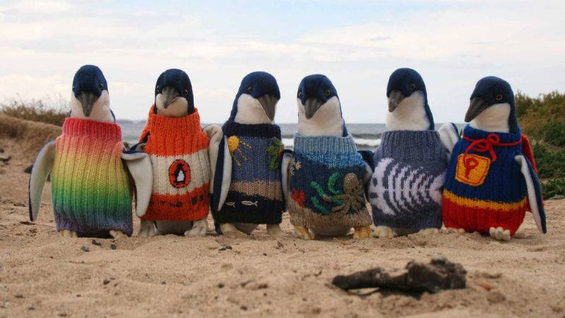 Ідея. Фонд підтримки пінгвінів австралійського острова Філіпа попросив любителів рукоділля зв'язати для птахів светри. Їх одягали на пінгвінів, забруднених нафтою. Одяг рятує від переохолодження, адже вкриті нафтою пір'я злипаються, і пінгвіни не можуть зігрітися. А ще светри заважають птахам ковтати нафту в спробах очистити пір'я — завдяки цьому працівники фонду встигли вимити всіх пінгвінів.
