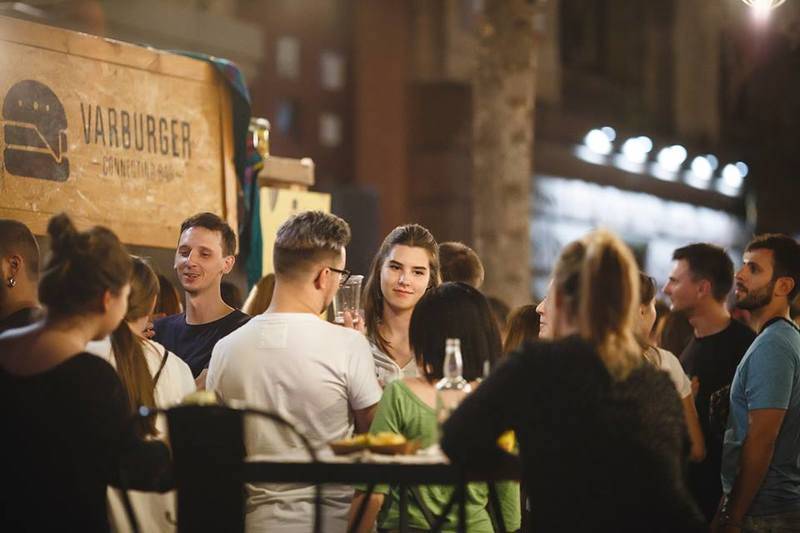 Щоб підкріпитися соковитим бургером, пастою або салатом і запити їх коктейлем у металевій чашці, перетинайте головну міську парковку в географічному центрі Дніпра і виходьте на асфальтове плато — потрапите в Connecting bar Varburger (пл. Героїв Майдану, 1). До речі, площа не завжди була пустельною: до 2014 року її смисловою домінантою був пам'ятник Леніну. Придивіться до хвойних заростей уздовж стіни великої П-подібної будівлі та йдіть на гірлянди і шезлонги. Бургери укомплектовані картоплею і салатом, так що почекайте із замовленням другої страви.