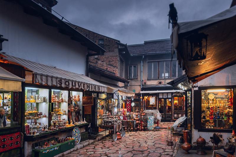 Сараево – город для медленных прогулок, мечтательного созерцания видов и потребления литров кофе. Местные жители знают толк в удовольствиях и расслаблении. Кажется, что и сам город уютно разлегся вдоль реки Миляцки и заботливо окружен холмами. Сараево неторопливо разворачивает перед взором путешественника свои эпохи – от старинного оттоманского квартала Башчаршия через австро-венгерские архитектурные сокровища и обломки социалистической Югославии к современным бизнес-кварталам.