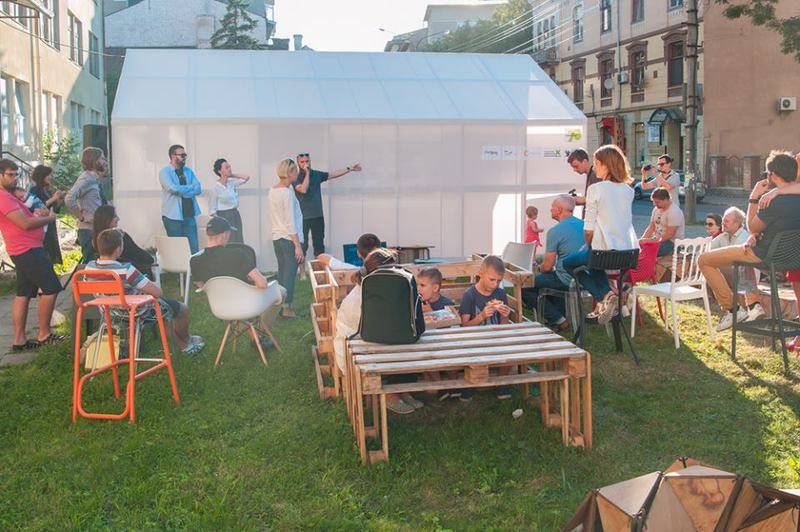 “Ми пробували тестувати цей простір біля друкарні на перебування в ньому людей. І виходило так, що ми поставили павільйон, додали туди мінімальних умов, запросили вуличних музикантів, поставили проектор з кіно, і простір одразу наповнився 50-60 людьми, які органічно проводили свій час” - говорить Олександр.
