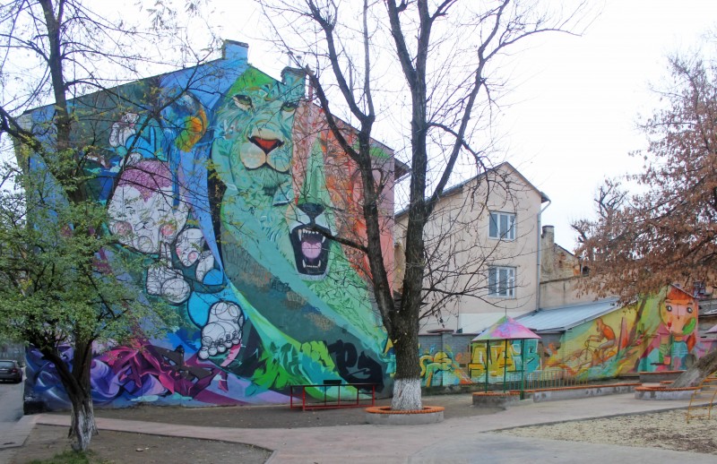 Торік восени мистецьке об’єднання «Фарбований лис» розробило пішохідний маршрут муралами одного з центральних районів Львова — Підзамче. Вони зібрали 15 наявних стінописів, намалювали шість нових і видали путівник Lviv WallKing.