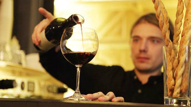 Винный бар начинает работу с шести вечера: в окне заведения загорается красный бокальчик, который сообщает, что здесь уже готовы угощать вином.