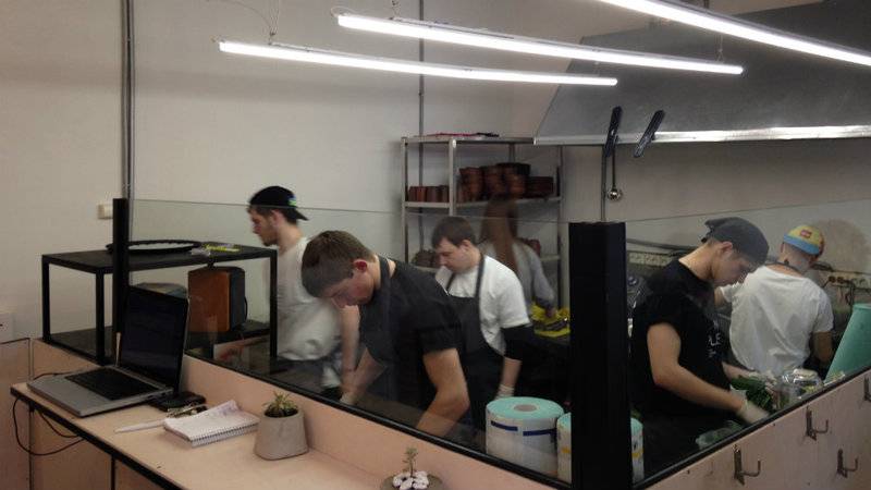 В основному залі – велика відкрита кухня й чотири невеликих столи. Також тут можна влаштуватися на підвіконні. Над простором обіцяють ще попрацювати, наприклад, хочуть додати сюди більше живих рослин.