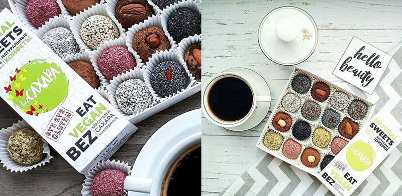 А це еко-солодощі від бренду Bez сахара. Там немає не тільки цукру, але і глютену, барвників і консервантів. При цьому все смачно, корисно та дико красиво. У новорічному наборі є цукерки, насіння чіа, снек (банан-кокос, яблуко-гарбуз або яблуко-апельсин на вибір) і листівка.