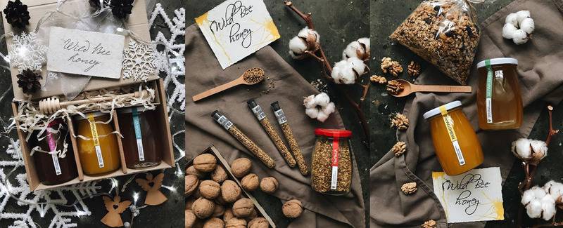 Звичайний мед пробували всі, а ось мед з м'ятою, імбирем або полуницею – випадало не кожному. Тепер є шанс. Усього бренд пропонує 9 смаків: м'ята, фінік+кориця, апельсин, чебрець, чилі+базилік, імбир, кориця+ваніль, полуниця, марципан. Можна замовити на пробу кілька баночок, а можна набір з усіх дев'яти смаків.