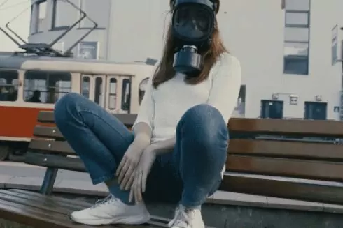 Рекламу респіраторів зняла компанія LINZA Production як соціально-критичний коментар до ситуації з якістю повітря у Києві.