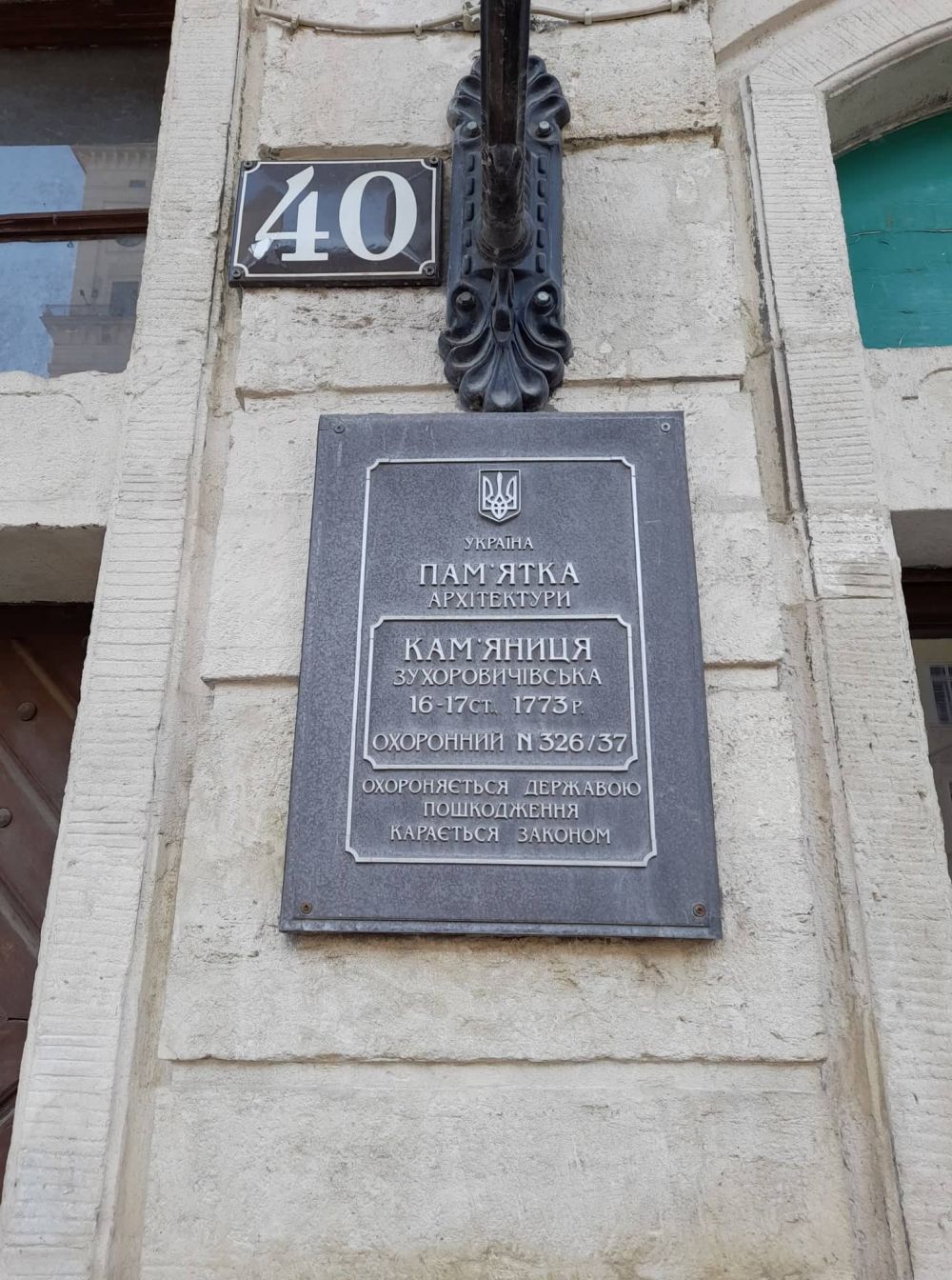 Кам'яниця Зухоровичівська, що на площі Ринок, споруджений у XVII ст. У другій половині XVIII ст. належав монастирю св. Онуфрія. У 1773 році будівля була перебудована і прикрашена фігурами атлантів.