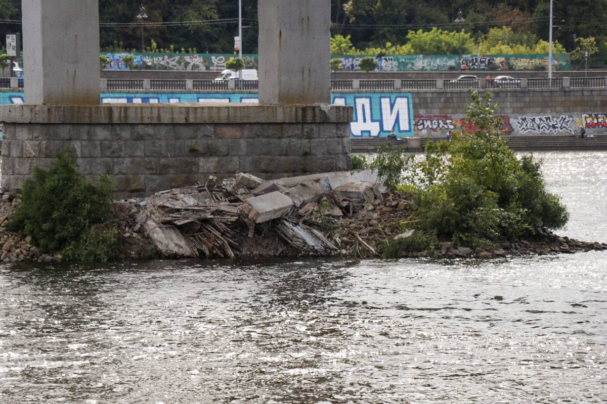 Від Пішохідного моста, який веде на Труханів острів, відвалилася частина бетонної конструкції біля однієї з основ. Про це повідомляє «Київ Оперативний».