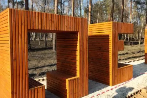 Взимку лавочки будуть підсвічуватися ілюмінацією. Навколо об'єкта висадили декоративні кущі та злакові рослини.