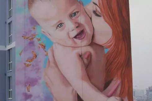 На фасаді багатоповерхівки біля метро «Харківська» з'явився новий мурал. Художники Володимир Пастушак і Юлія Мастерс з PastART studio, які працювали над проєктом, стверджують, що це «найвищий мальований мурал в Європі».