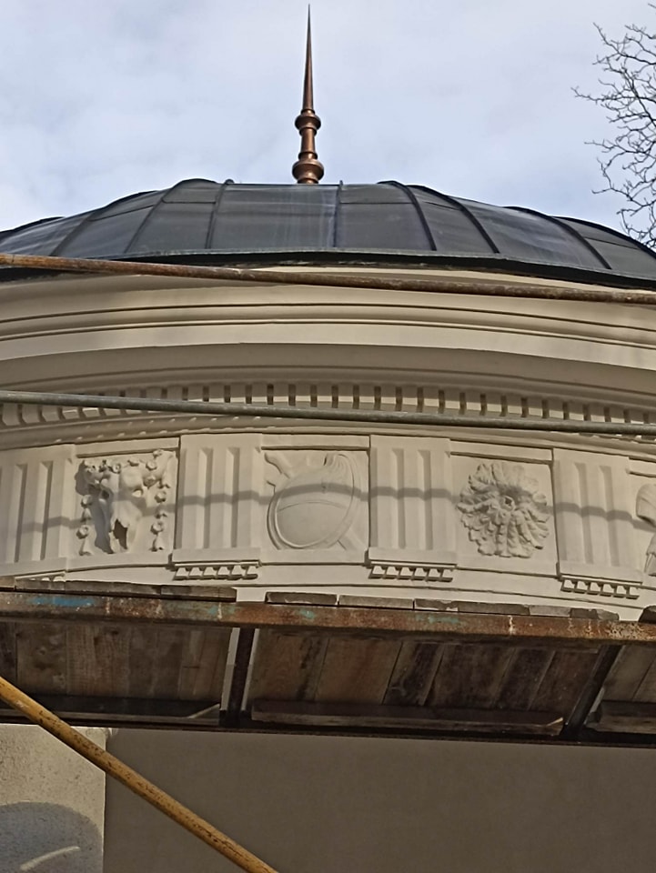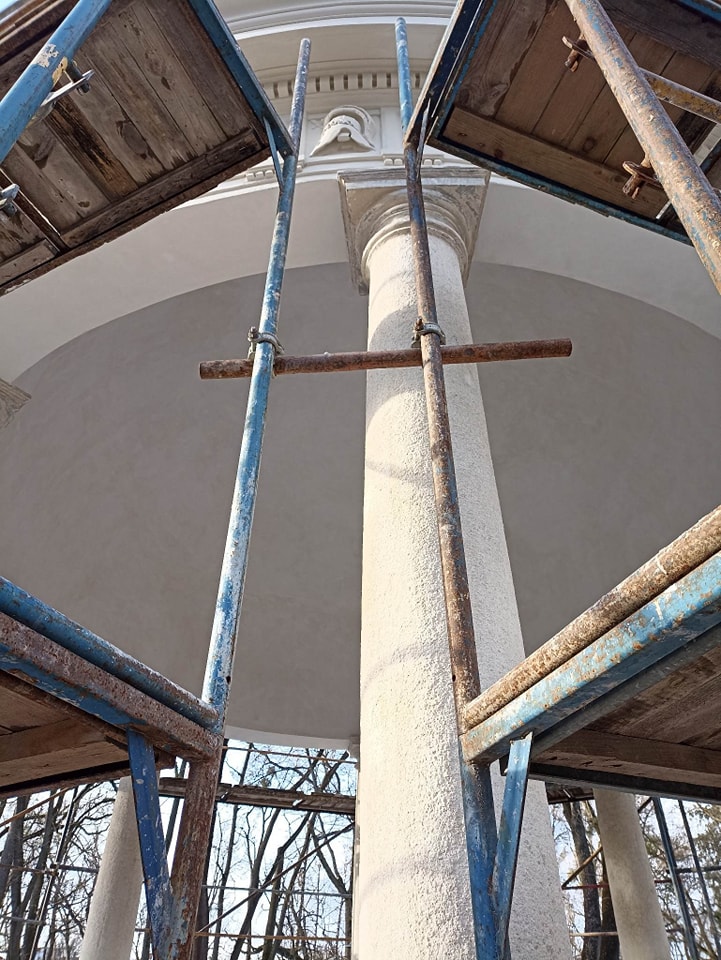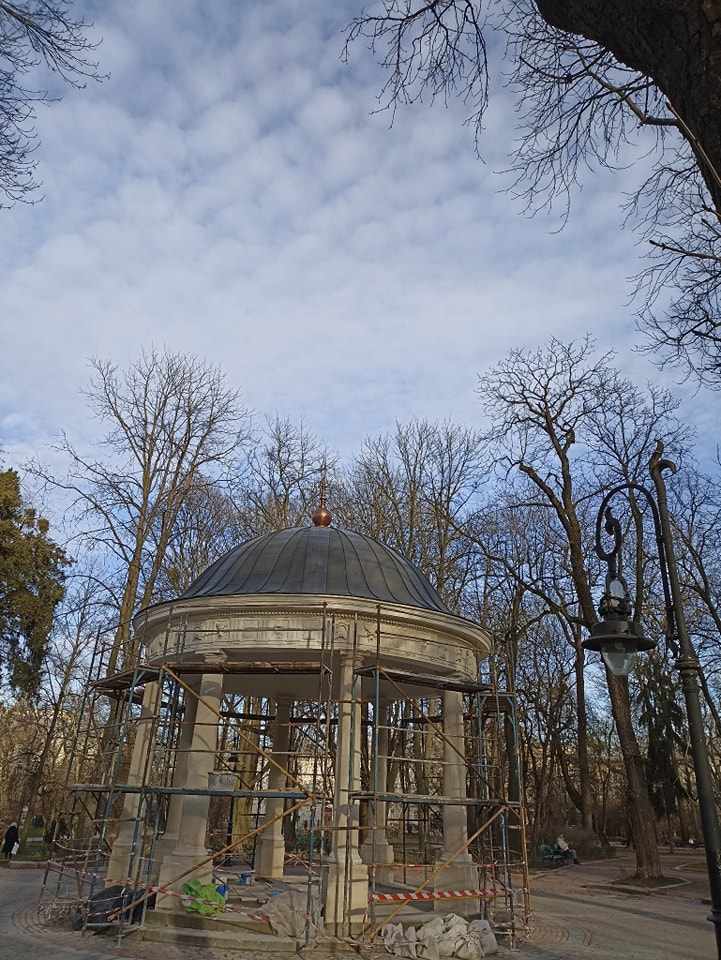Реставрація єдиної вцілілої 200-річної ротонди у парку Івана Франка майже завершена. Там вже відновили круглий дах, карнизи та античні колони.