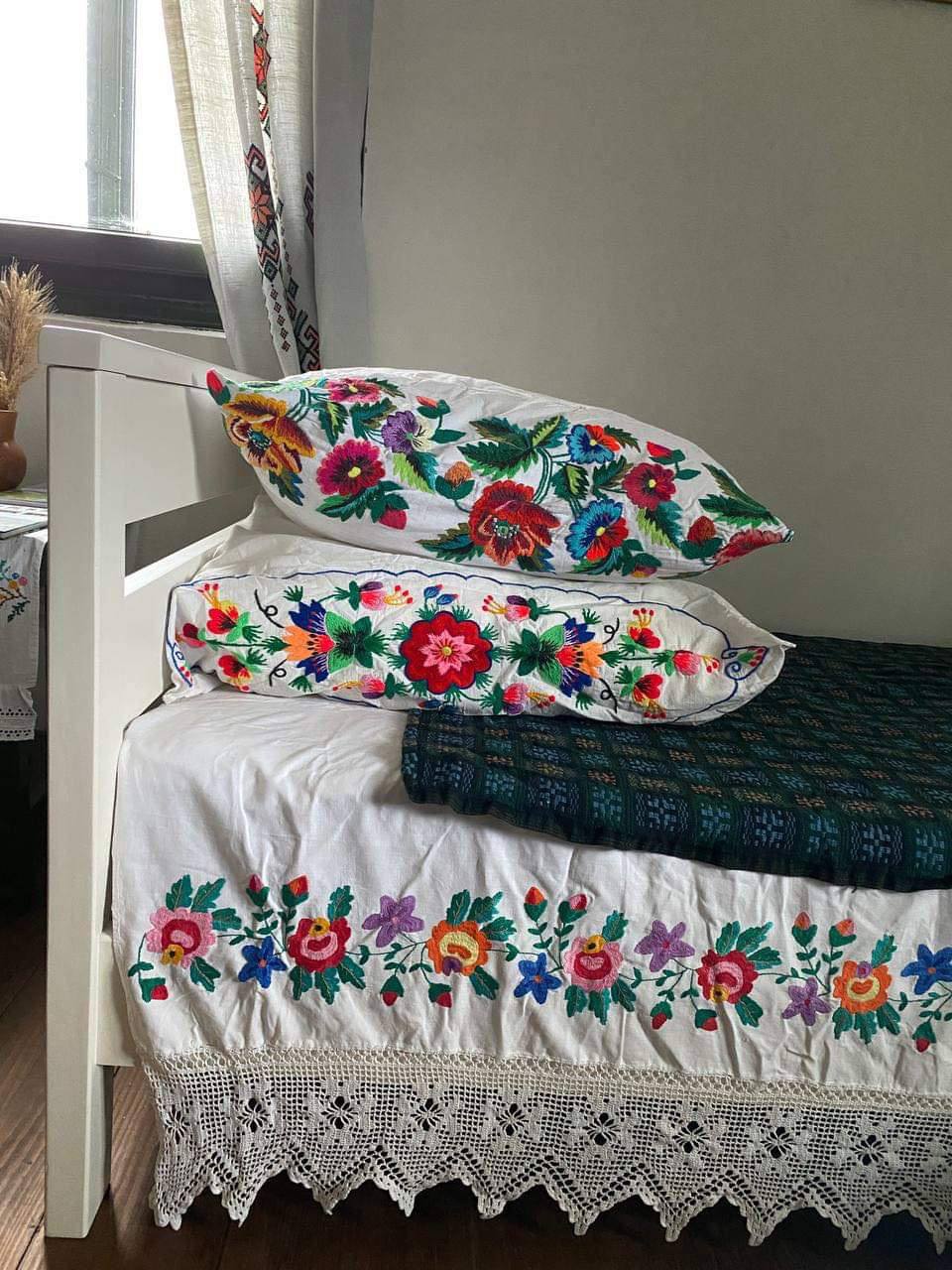 Усю попередню зиму нас психологічно витягувало те, що ми шукали та збирали старовинні речі: рушники з Полтавської області, глечики з Черкаської і Чернігівської областей. У нас багато речей з історіями. Їх люди надсилають з листами, мов, цю фіраночку вишила бабуся у такому-то році, вона в неї висіла вдома. А навесні ми поїхали і розвісили все в хаті.