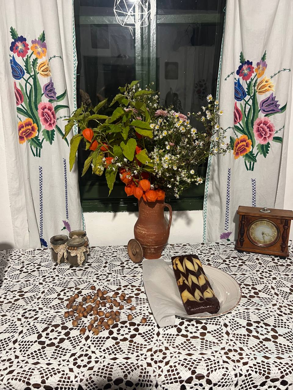 Інша сусідка, яка допомагає нам підтримувати хату, підтоплює її, коли ми приїжджаємо, завжди молоком пригощає. Ми якось попросили затопити хату, заходимо, а там стоять квіти, сирник і горіхи.