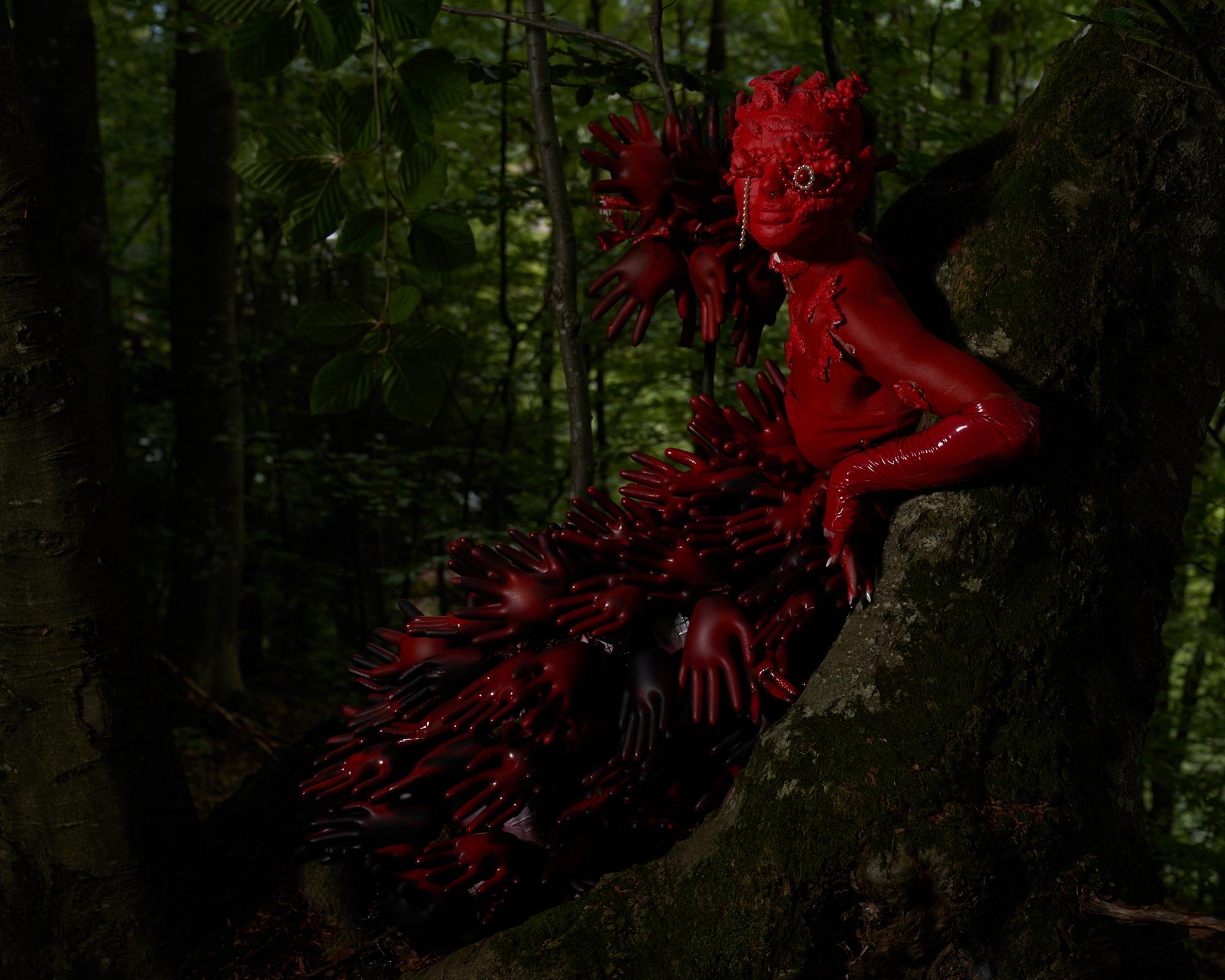 Ставитися серйозно до костюму я почала у 2021 році. Я вирішила, що якщо вже братися, то за щось серйозне, хоча й не знала, як це зробити. Саме тоді я взялася за найскладніший з усіх зроблених мною образів. Здається, на нього пішло близько місяця-півтора. Мені допомагали друзі, але я була близька до того, щоб усе покинути. Костюм мав безліч дрібних деталей: потрібно було зібрати тоненькі паперові стрічки у пучки, порізати, прошити та шарами приклеїти до основи. Це плаття робилося на замовлення для художниці Марії Духовне Личко, тому шляху назад уже не було. Воно вийшло дуже важким, рожевим і красивим. Але тепер, набивши руку, на створення костюма йде 3–7 днів.