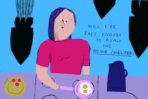 "Для Museum of Modern Art я намалювала коротку історію про те, як зараз жити в Україні. Спойлер: відчуття напруженості та тривоги", – написала Сарвіра у Facebook.