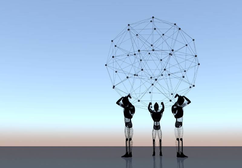 Арт-об'єкт символізує світ майбутнього, оповитого нейронними мережами. Як у давній легенді, три атланти тримають на плечах земну вісь, тільки в нашій інтерпретації атланти перетворилися на роботів, а земна куля — на сферу, що складається з нейромереж.