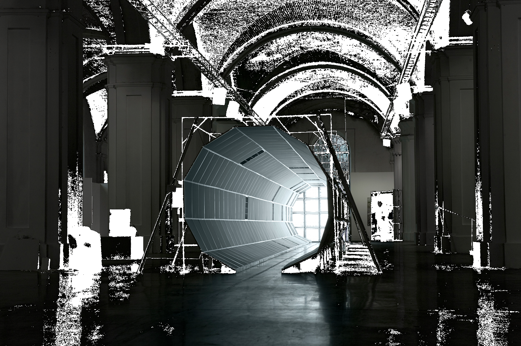 Такий же спосіб реалізації ми вибрали і для проекту TimeToSay Goodbye, який символізує смерть на робочому місці. Це тунель з офісної стелі Армстронг, створений відомим київським художником Олексієм Саєм.