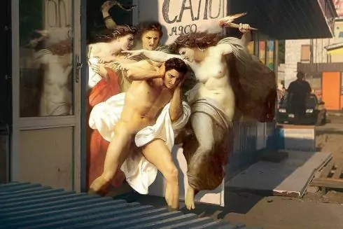 Чому це часто якісь міфологічні герої? Просто вони добре виглядають в звичному нам оточенні, адже контраст завжди привертає увагу. Ми бачимо типову ситуацію - весела компанія випиває на вулиці, і хоча це якісь італійці з іншої епохи, розуміємо, що ведуть вони себе практично так само, як і ми.