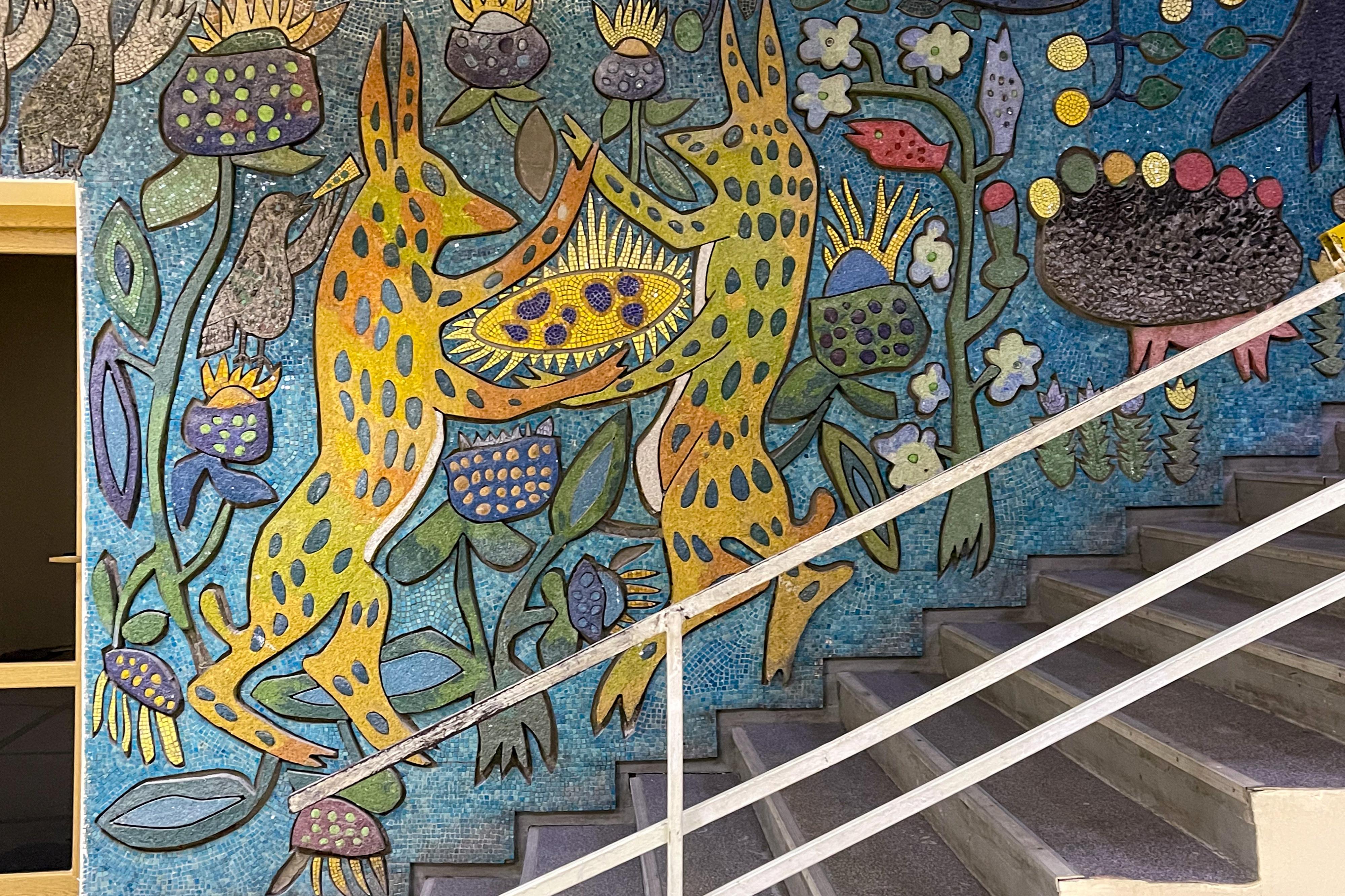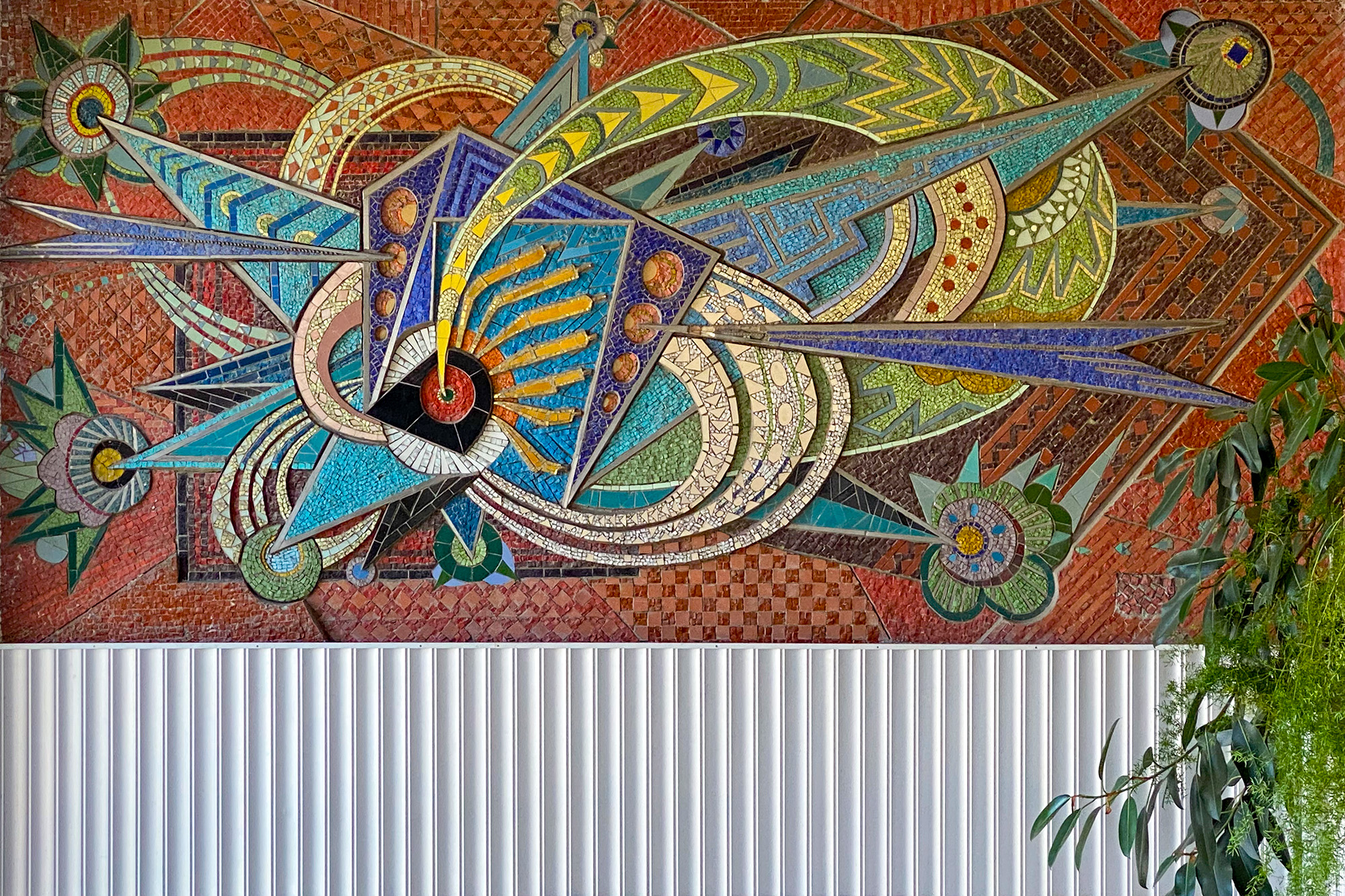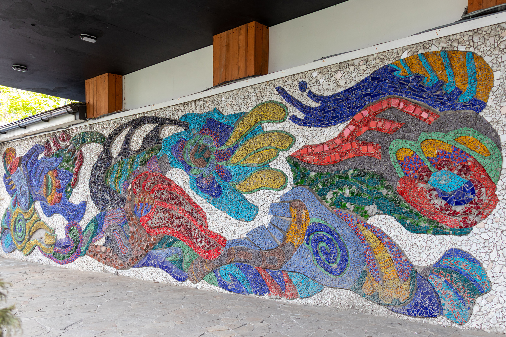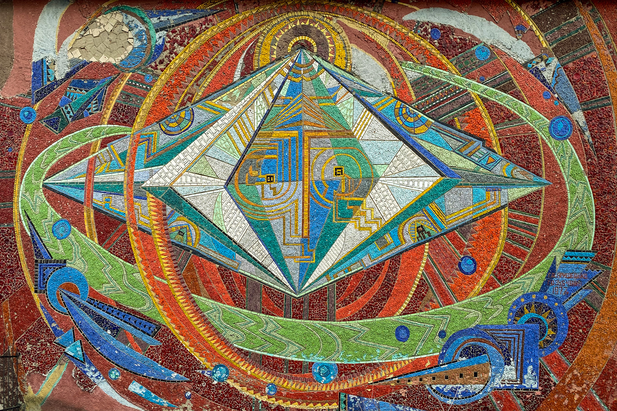 За шість років досліджень я задокументувала сотні мозаїк — і дотепер знаходжу нові. Частину з них десятиліттями ховали за гіпсокартоном. Тепер їх починають відкривати, як у супермаркеті «Фора» на Гроденській чи у колишньому кафе «Київська Русь» на Олени Теліги. Інші ще чекають на повернення: фрагмент панно Ернеста Коткова «Юність і спорт» визирає з-під гіпсокартону в коледжі імені Івана Піддубного, як і частина кутової мозаїки Ірини Перової для магазину «Казка» на Великій Васильківській.