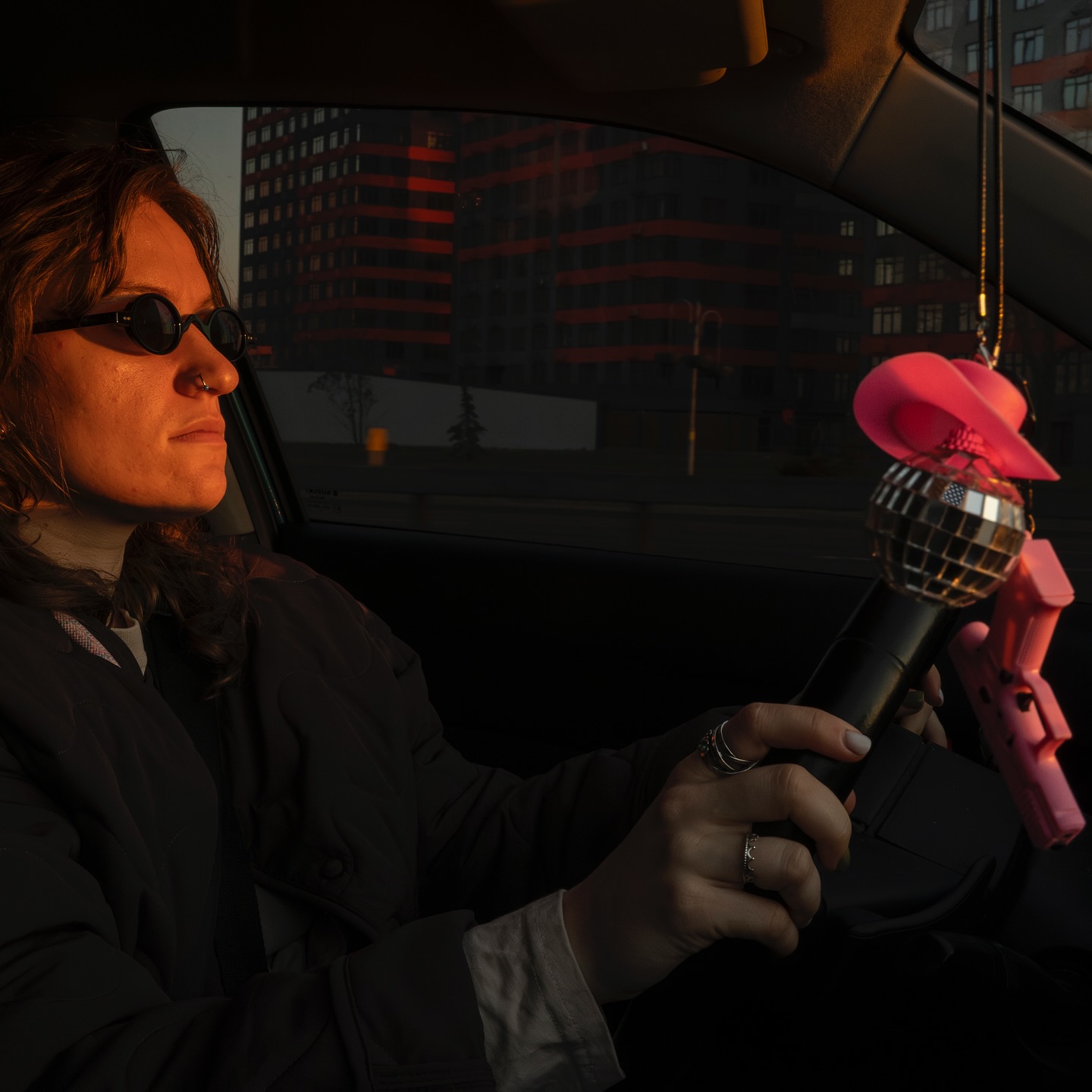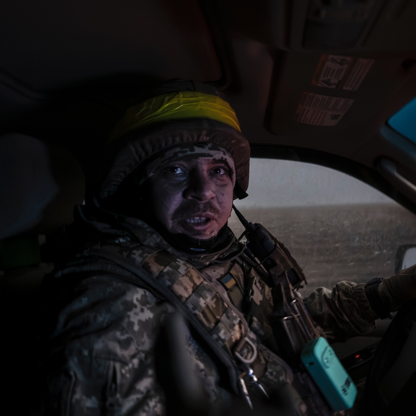 А ось це — дорога на передову з волонтером з іграшковим рожевим глоком та диско-кулею. Я дуже люблю цей знімок.