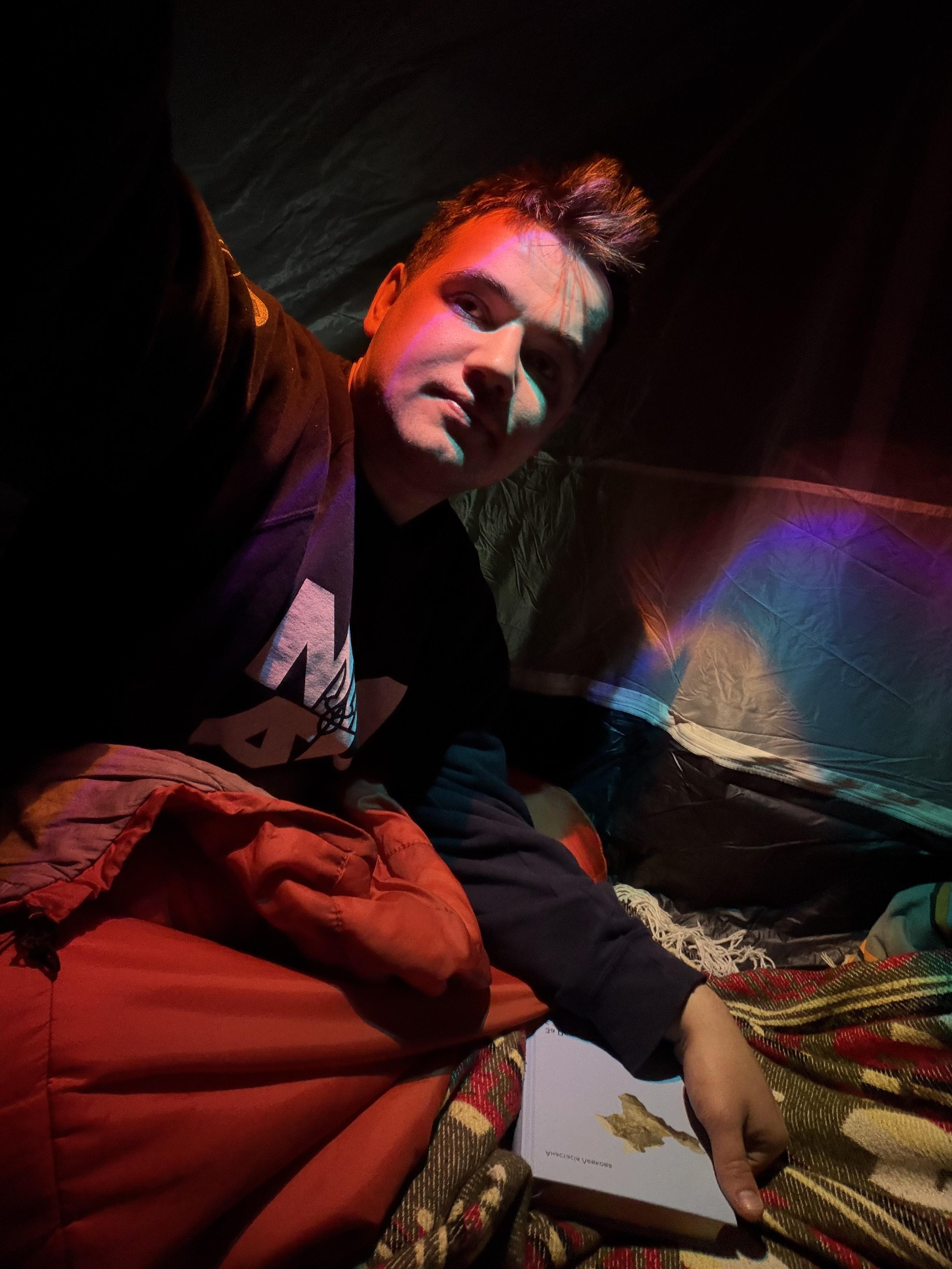 За температури 12 градусів я намагався грітися у спальнику. Завдяки захопленню туризмом у мене є спорядження, з яким можна відносно комфортно почуватися в таких умовах. Коли було вже близько 5 градусів, я зрозумів, що можна ставити намет. Це частково й допомогло. Потім, коли було трошечки більше світла, я ставив обігрівач навпроти входу в намет. Так нагрівав його, навіть міг якийсь час посидіти в футболці.