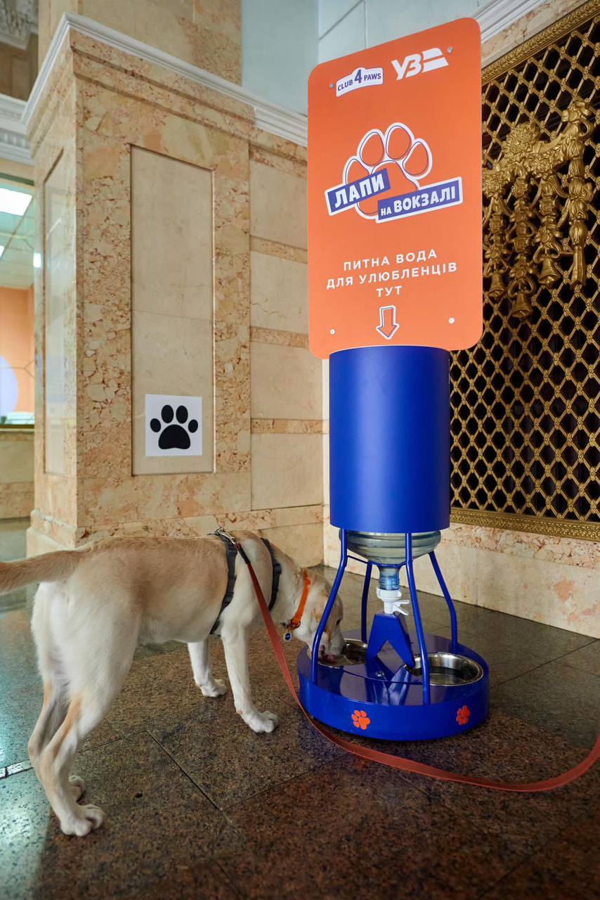 Зазначається, «Укрзалізниця» і бренд корму для тварин Club 4 Paws від українського виробника Kormotech забезпечили вокзали зручними дозаторами питної води для тварин, що подорожують поїздами.