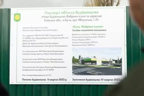Фабрика-кухня у Бучі має запрацювати 1 вересня 2023 року. Меценатом проєкту став Говард Баффет, американський філантроп і бізнесмен.