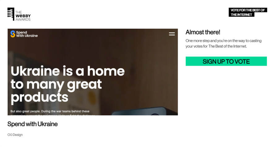 Також Spend With Ukraine номіновані в категорії Activism. Це доступний каталог з українськими компаніями, стартапами та брендами задля просування українських продуктів та послуг та допомагати знаходити їм клієнтів. Проголосувати за них можна тут.